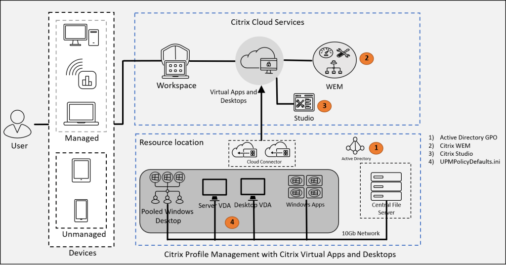 - Citrix Profile Management (CPM): CPM is a standard solution included with the Citrix Virtual Apps and Desktops product. Works similarly to Microsoft roaming profiles and is being expanded to support containerization.
